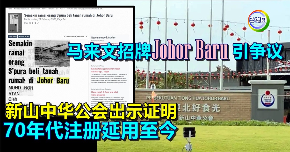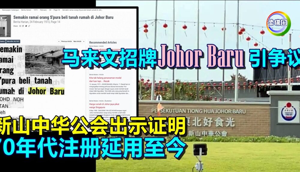 马来文招牌“Johor Baru”引争议 新山中华公会出示证明 70年代注册延用至今