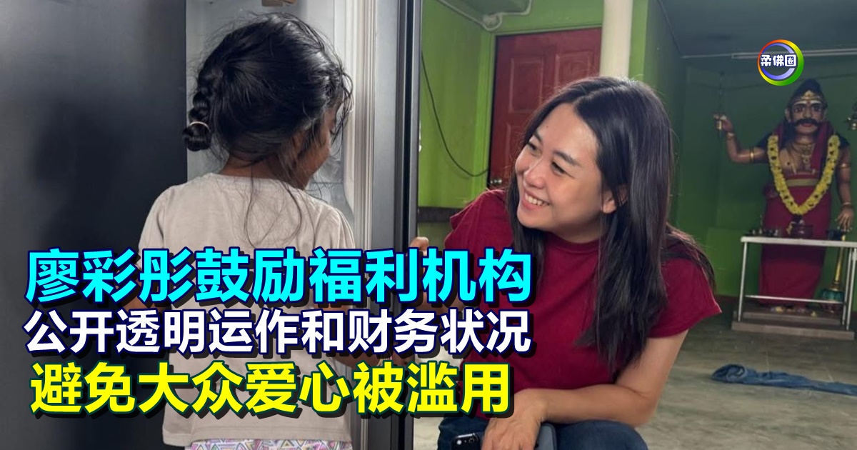 廖彩彤鼓励福利机构 公开透明运作和财务状况 避免大众爱心被滥用