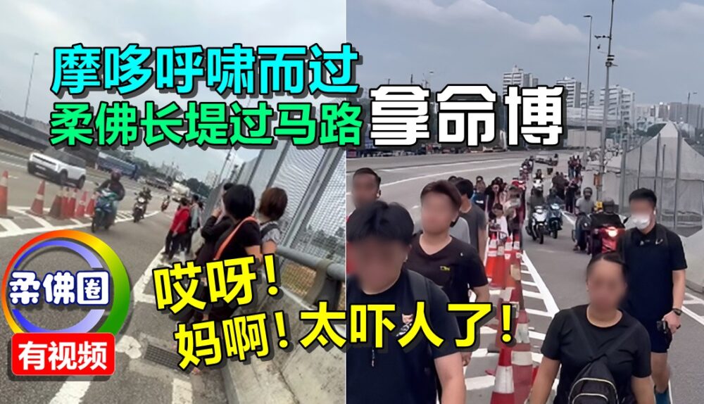 哎呀!妈啊!太吓人了!摩哆呼啸而过 柔佛长堤过马路 拿命博