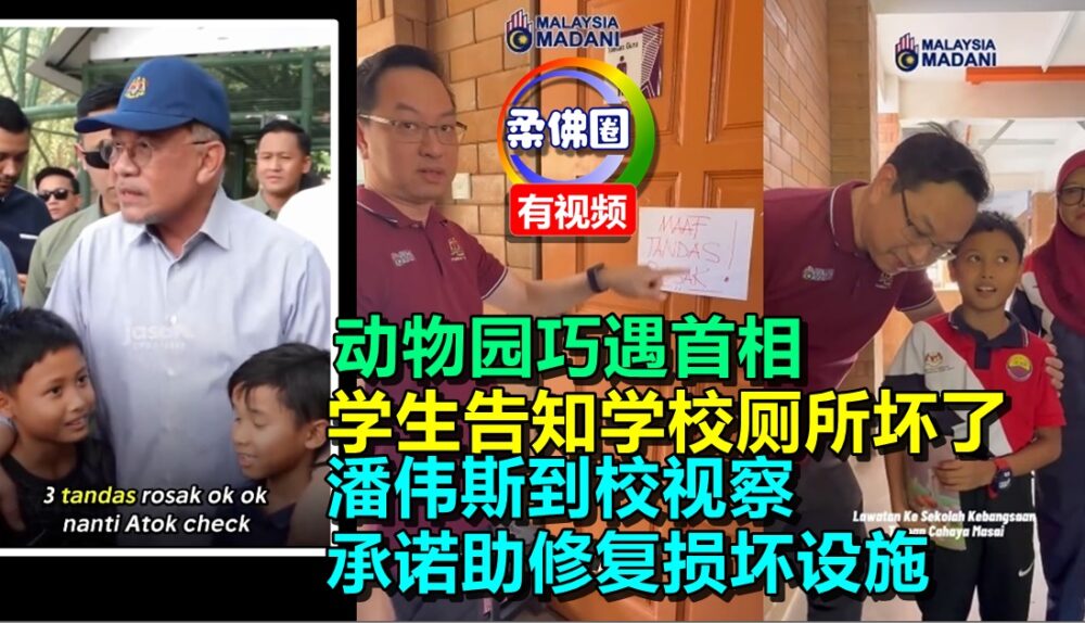 (新山24日讯)国小学生在动物园巧遇首相,告知学校厕所坏了,国会议员潘