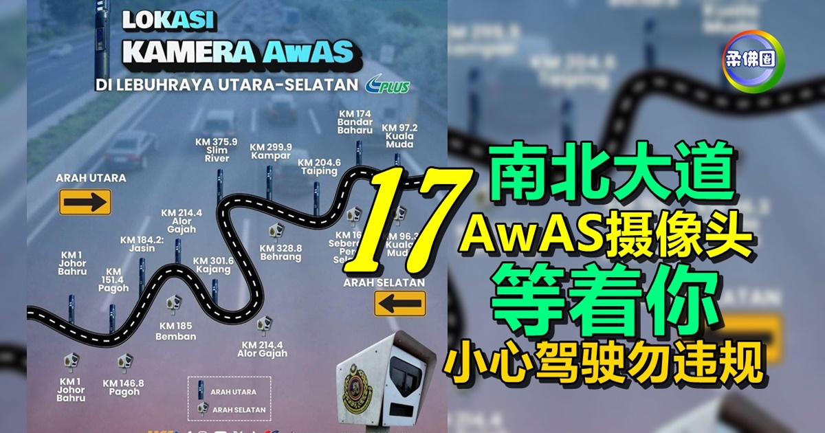 (新山18日讯)南北大道安装17个自动安全醒觉系统(AwAS)摄像头,