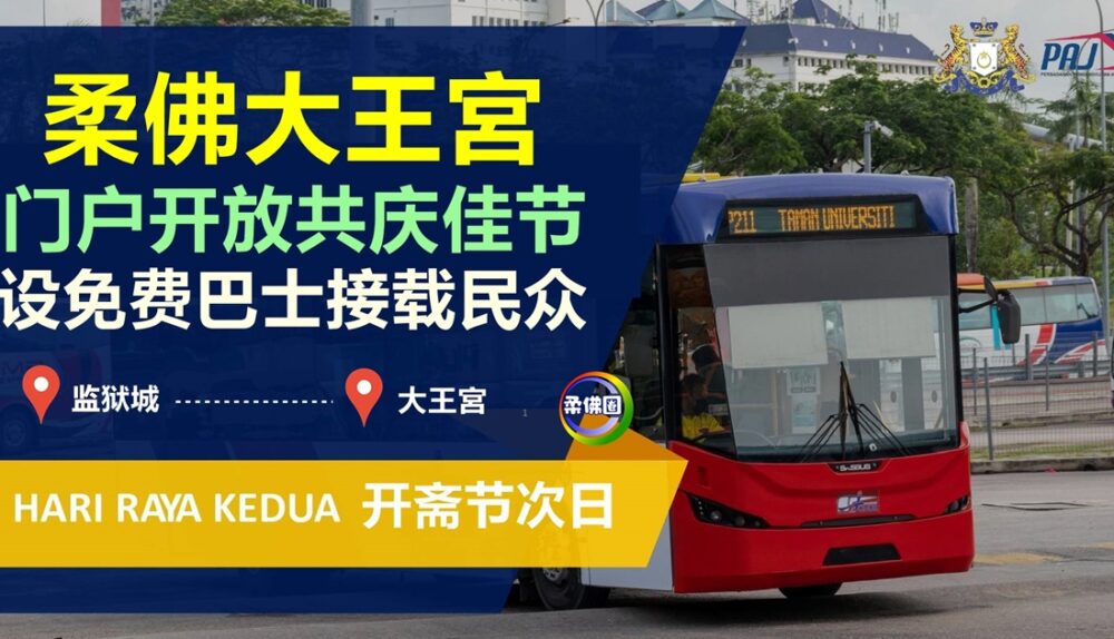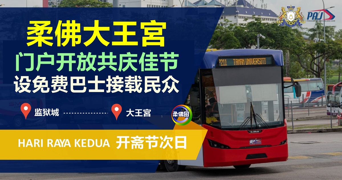 (新山21日讯)开斋节次日,柔佛大王宫开放门户,有免费巴士载送! 柔佛
