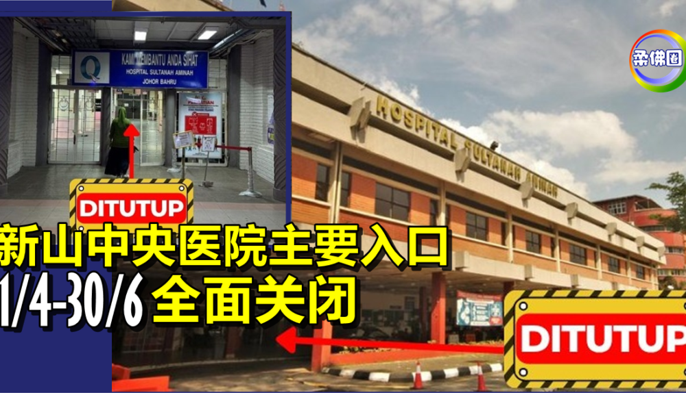 新山中央医院主要入口 4月1日至6月30日全面关闭