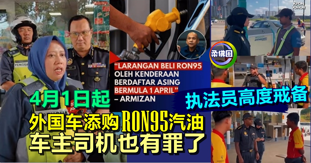 执法员高度戒备 4月1日起 外国车添购RON95汽油 车主司机也有罪了