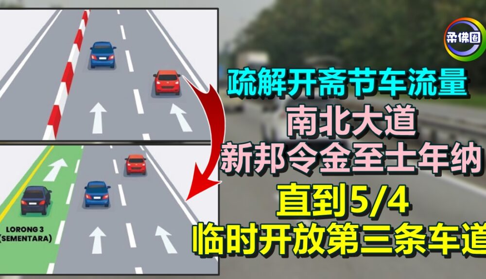 疏解开斋节车流量 南北大道新邦令金至士年纳 直到5/4 临时开放第三条车道