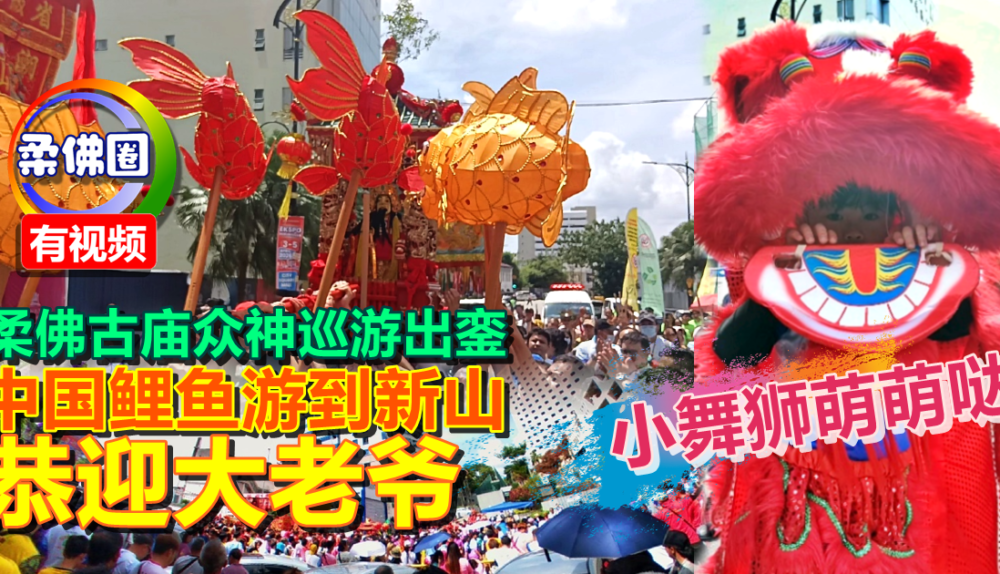 柔佛古庙众神巡游出銮 小舞狮萌萌哒 中国鲤鱼游到新山恭迎大老爷!