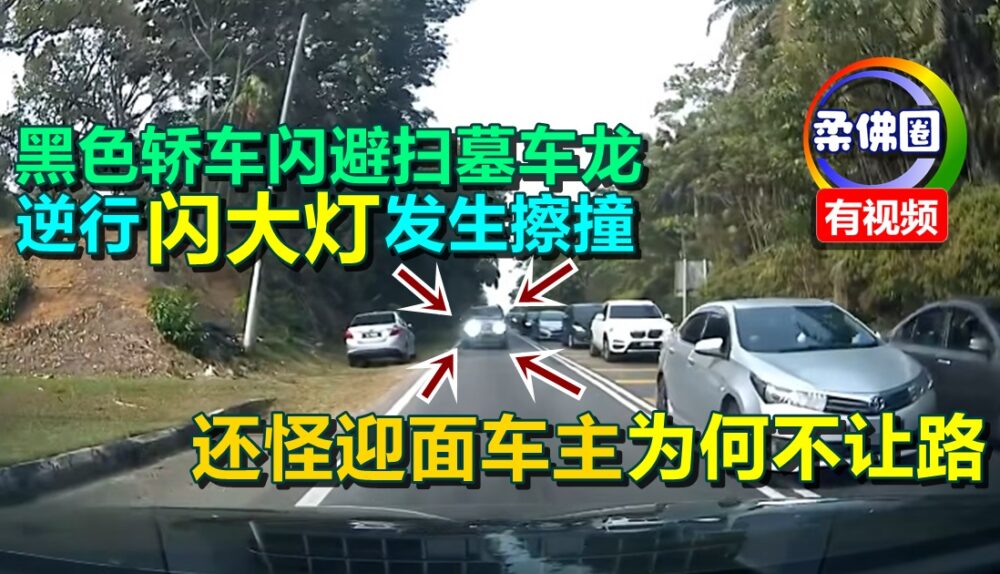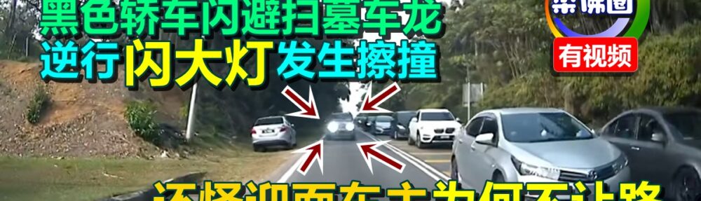 (古来29日讯)黑色轿车司机为避开扫墓车龙,竟驶入反方向车道,还闪大灯
