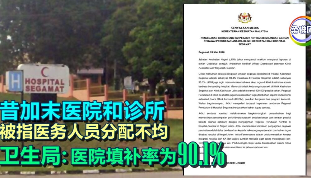 昔加末医院和诊所 被指医务人员分配不均 柔卫生局:医院填补率为90.1%
