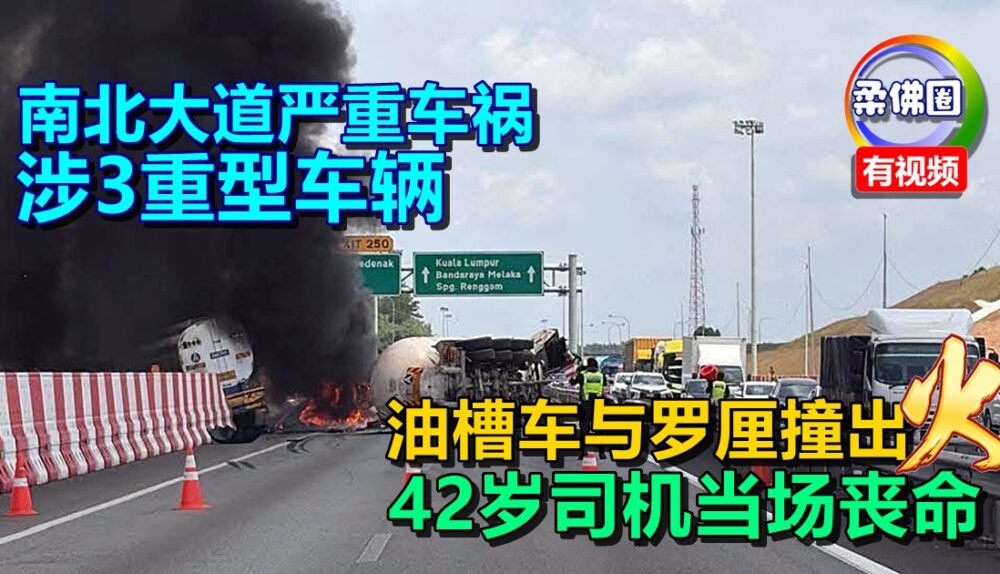 南北大道严重车祸 涉3重型车辆 油槽车与罗厘撞出火 42岁司机当场丧命