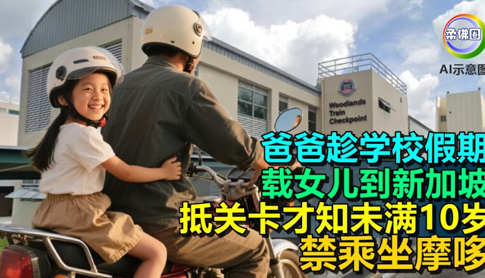(新加坡21日讯)趁学校假期,父亲想骑摩哆载女儿到新加坡团聚,岂知通关