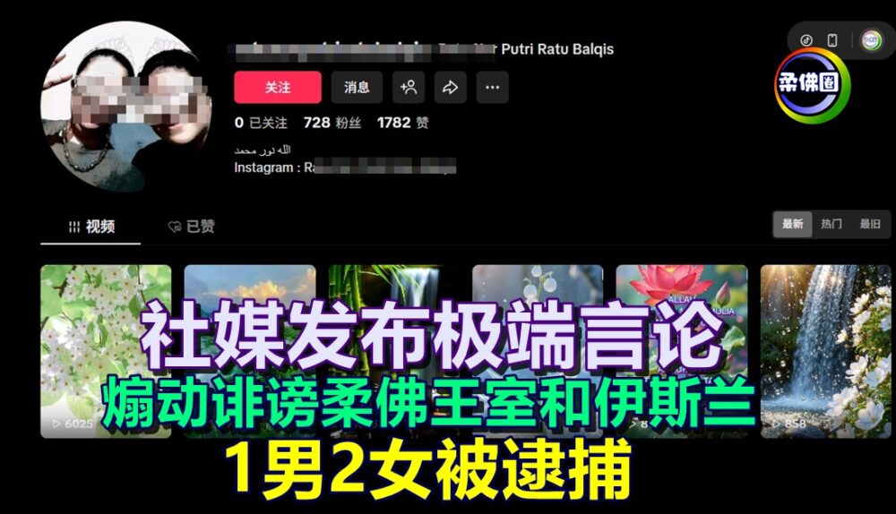 社媒发布极端言论 煽动诽谤柔佛王室和伊斯兰 1男2女被逮捕