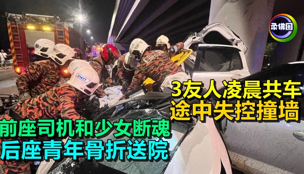 (新山3日讯)3名友人共乘一车,途中失控撞向混凝土墙,造成1名青年和1