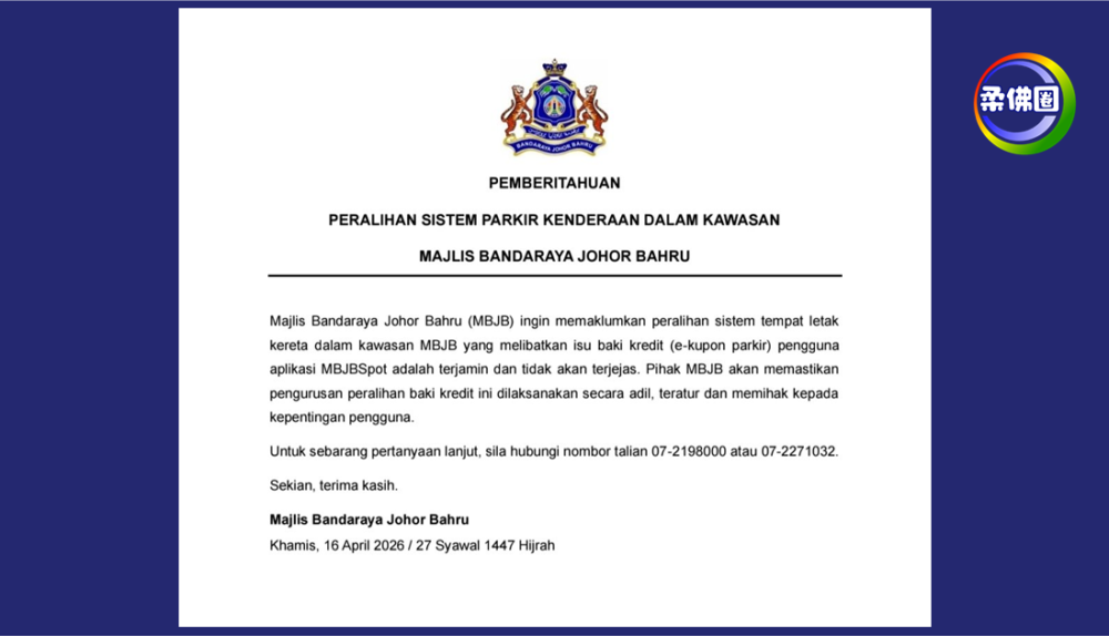 MBJBSpot 用户请放心!新山市政局:泊车余额转移将获保障