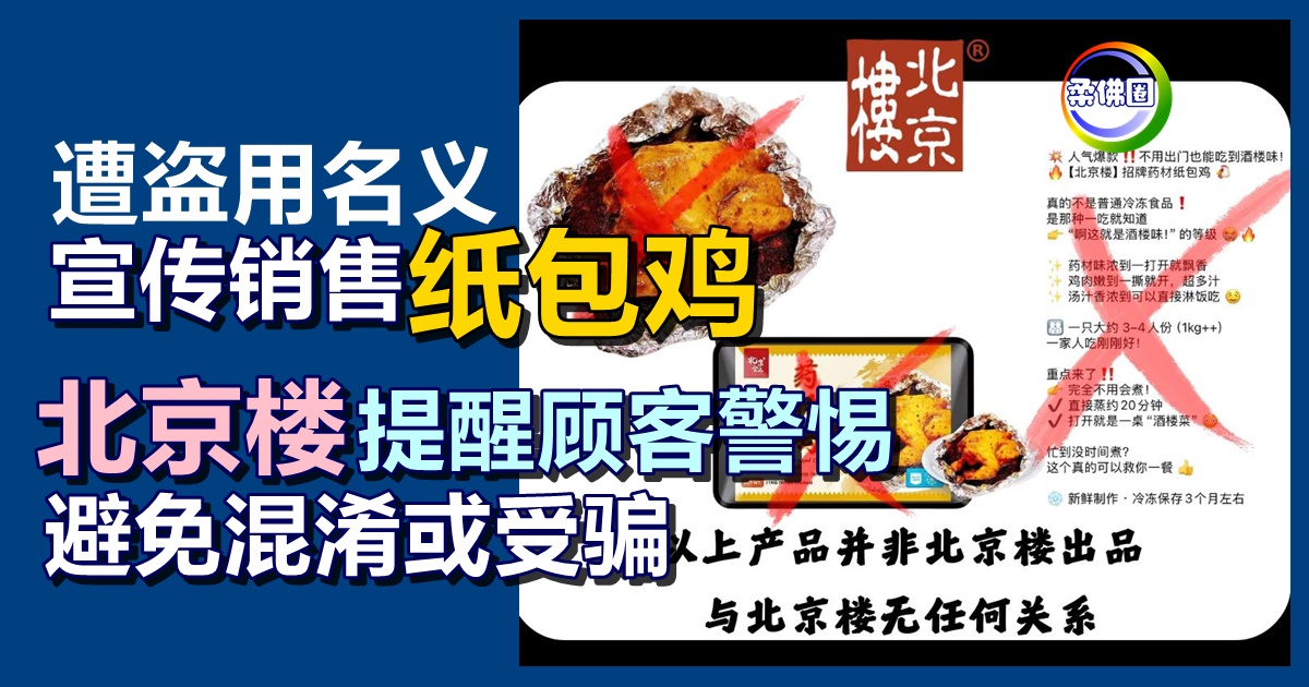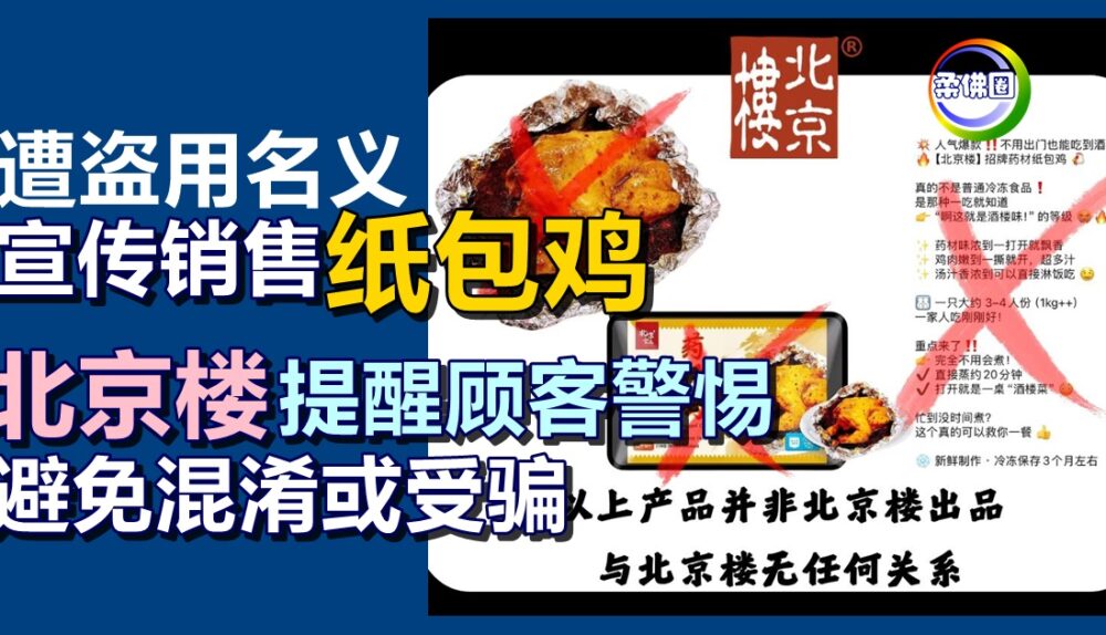 (新山3日讯)遭盗用名义宣传销售“纸包鸡”,“北京楼”发声明提醒顾客提