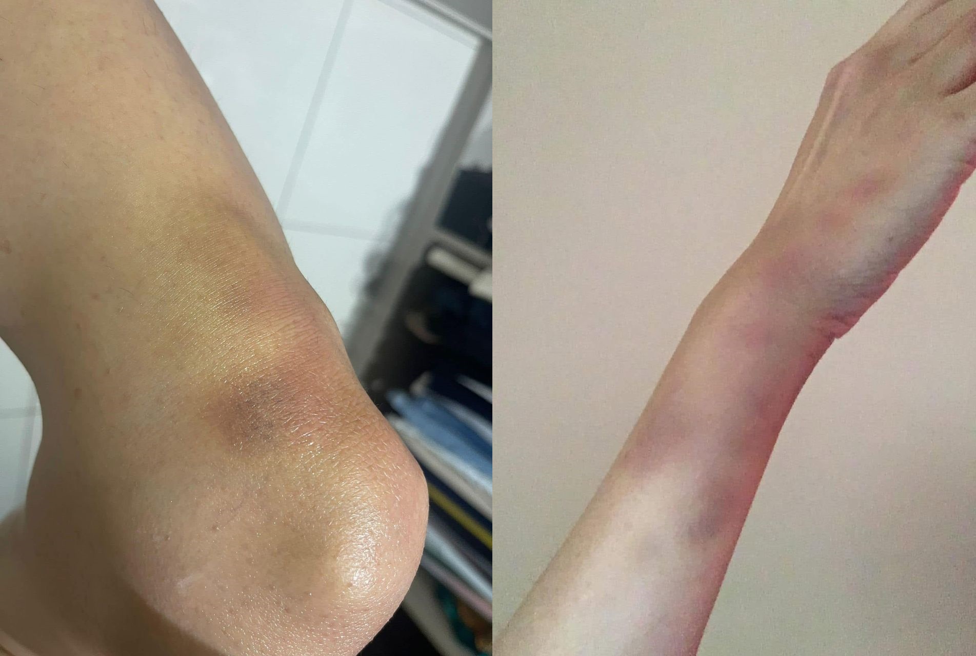 刘珍珍举例,在揭发丈夫嫖妓后,她曾被打得手臂瘀青,也试过坐在椅子上,遭丈夫连人带椅扛起摔在地上,造成脚受伤。