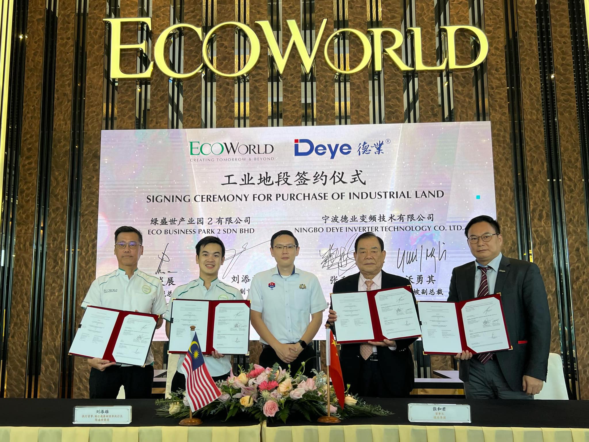 (古来4日讯)中国宁波德业集团与 Eco World 正式签署合作协议,在士乃 Eco Business Park II 投资 1.5亿美元(约6亿6000万令吉),建设新能源科技设施。