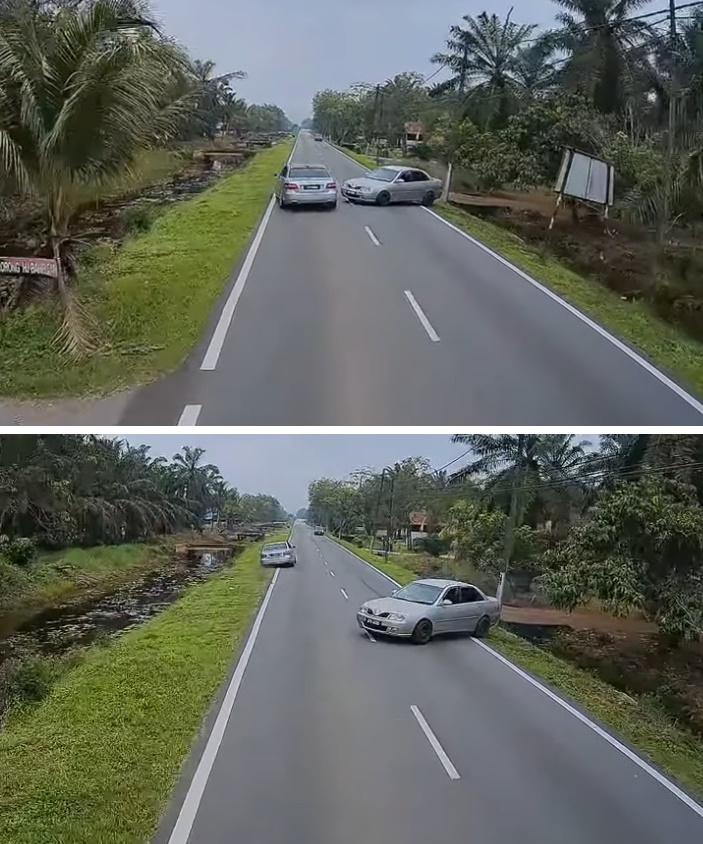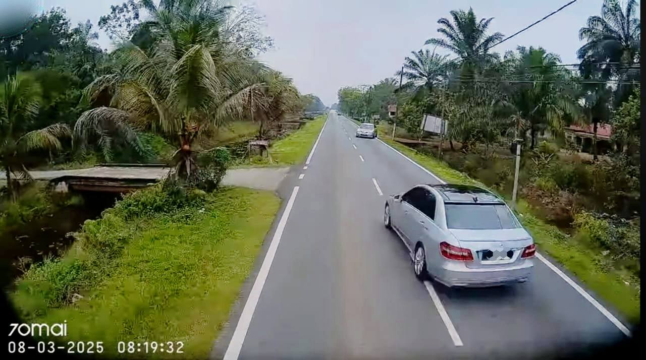 (峇株巴辖9日讯)死神擦肩而过!一辆轿车涉嫌危险超车,迎面轿车司机吓得紧急踩煞车且打滑,惊险避过相撞一劫,令人捏把冷汗。