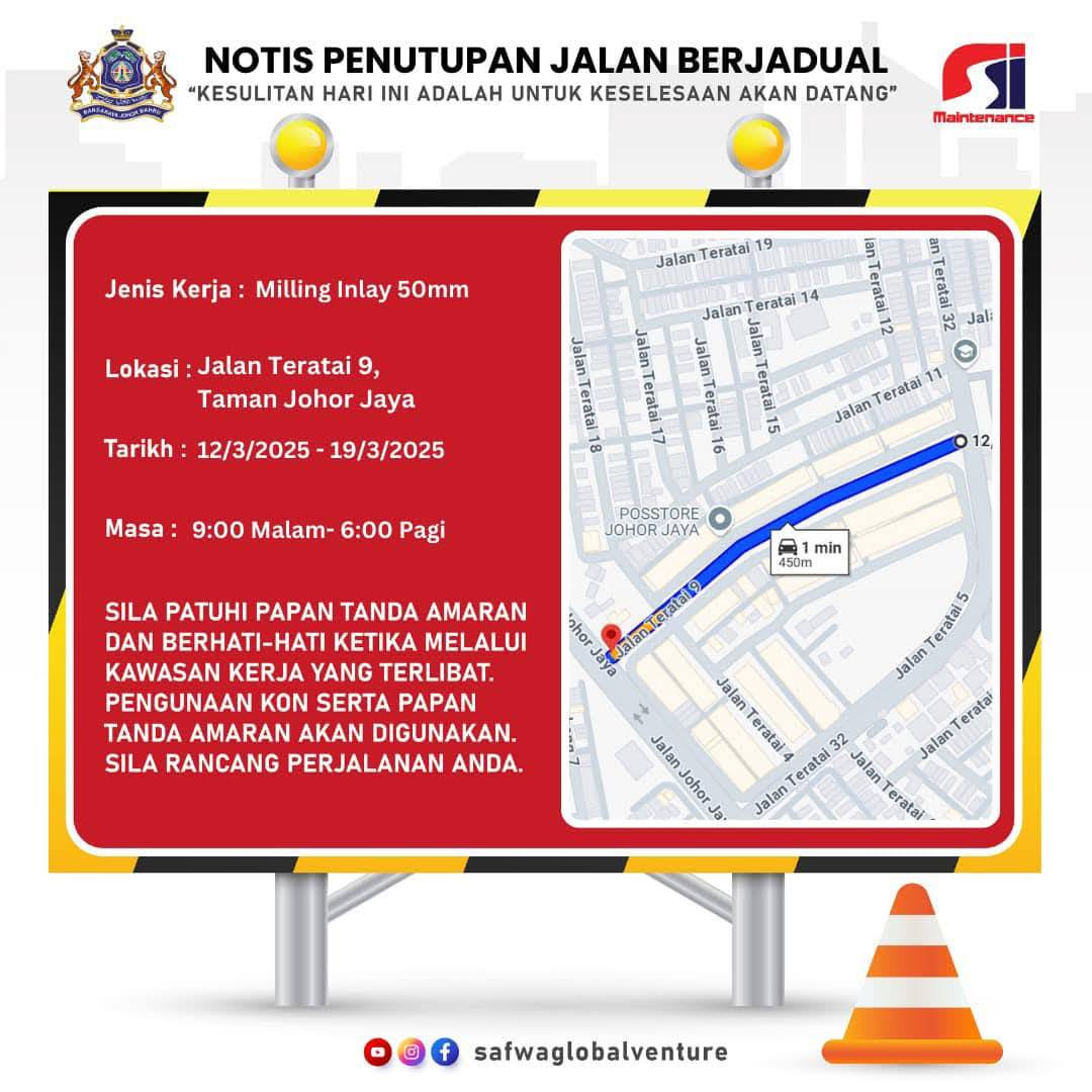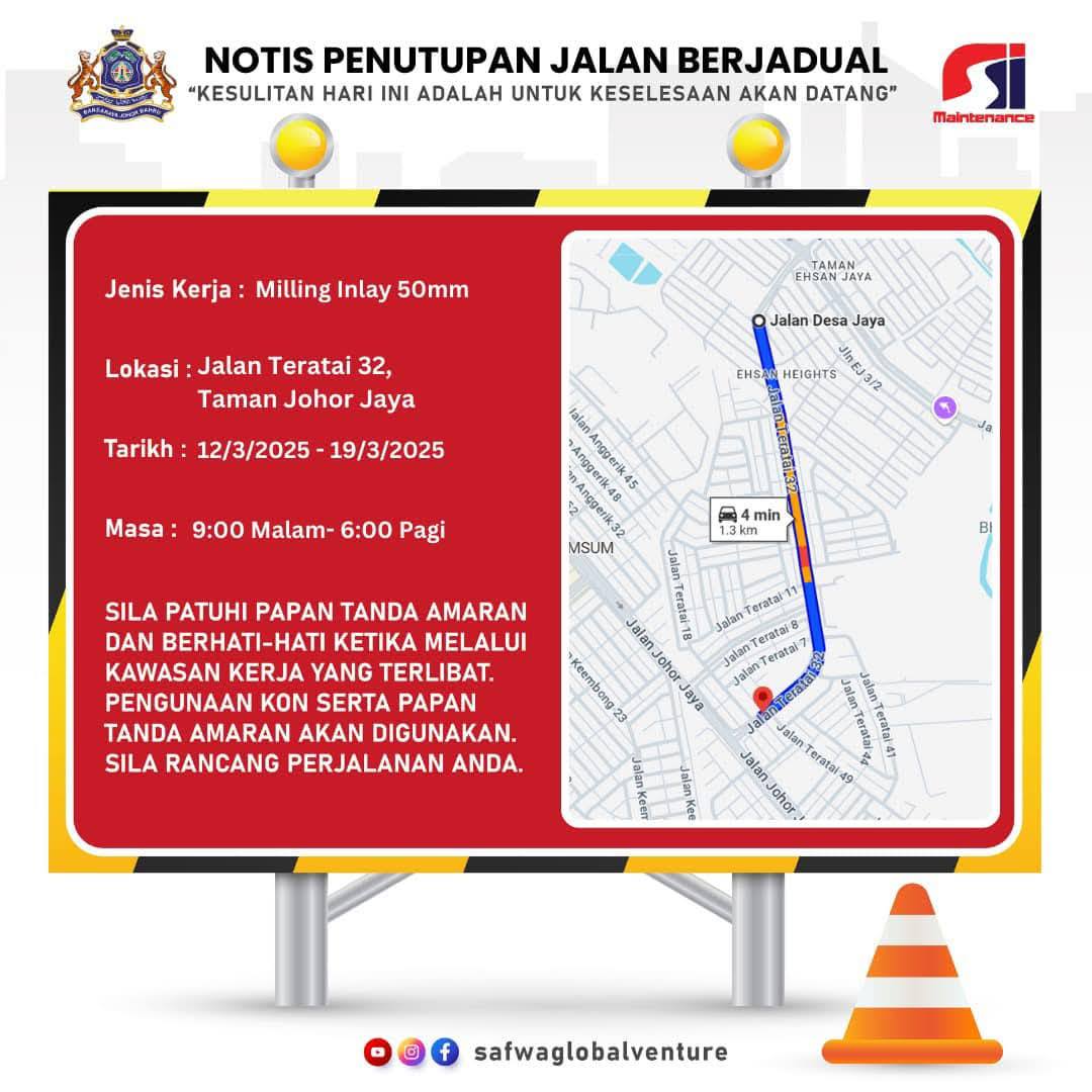 📍 地点: Jalan Teratai 9 dan Teratai 32, Taman Johor Jaya