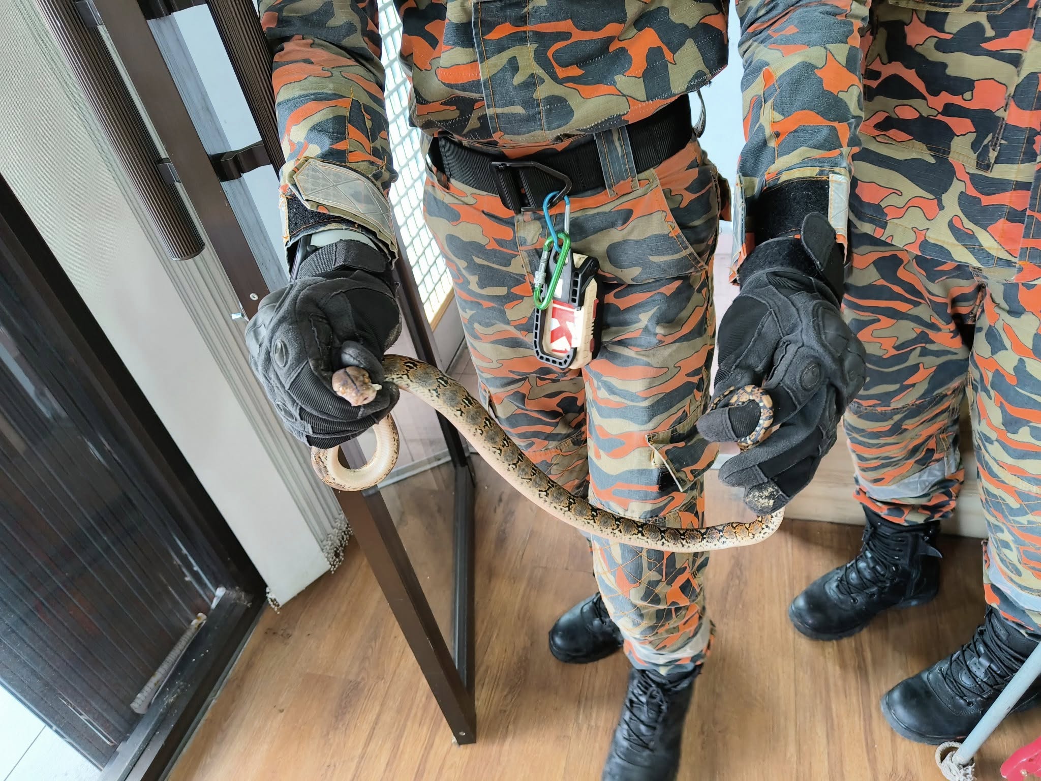 她立即致电柔佛再也消拯局,消拯队3分钟抵达,3秒把蛇捉住。