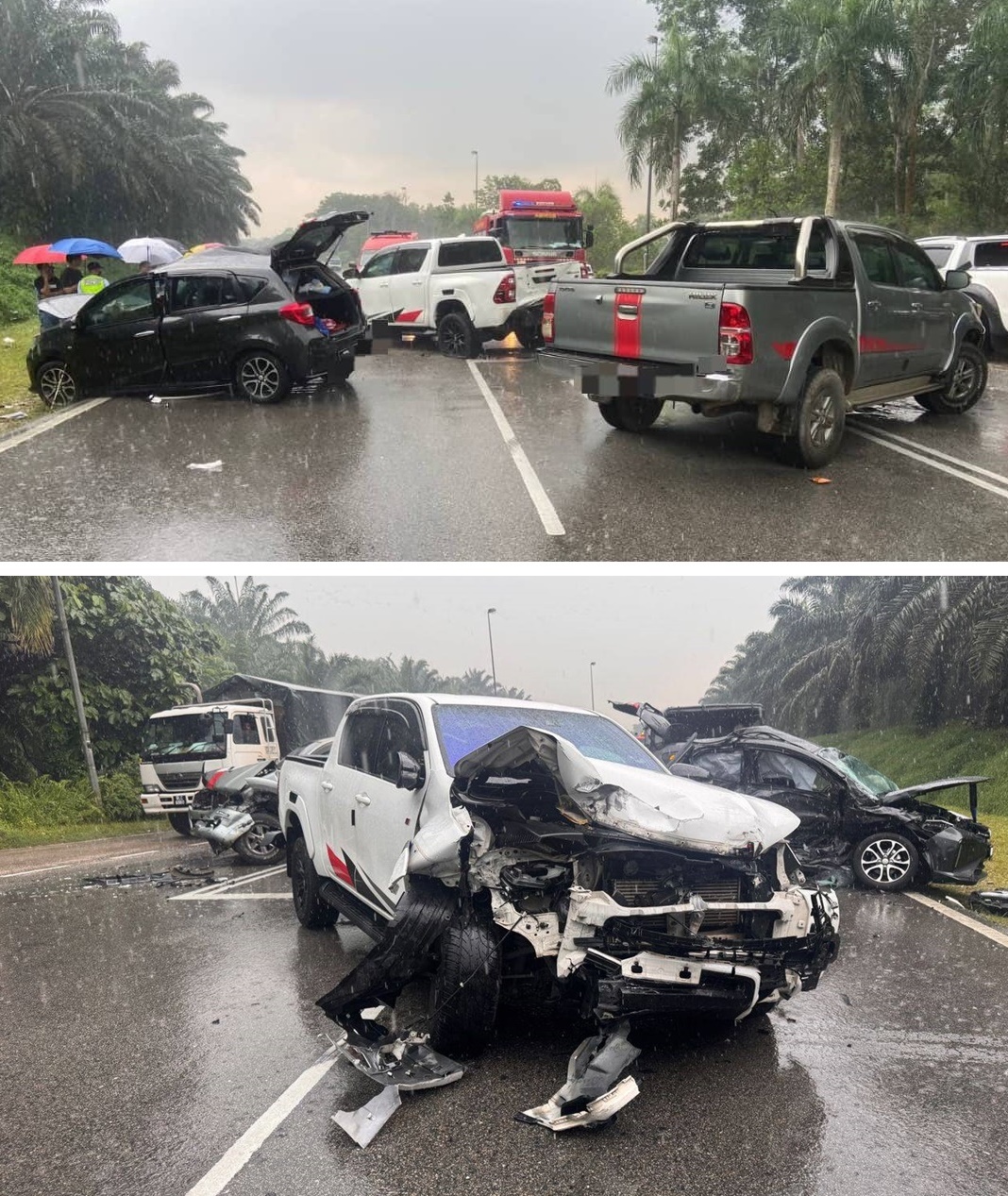 至达城警区主任莫哈末苏海米发文告指出,车祸涉及1辆Myvi轿车、2辆货卡。