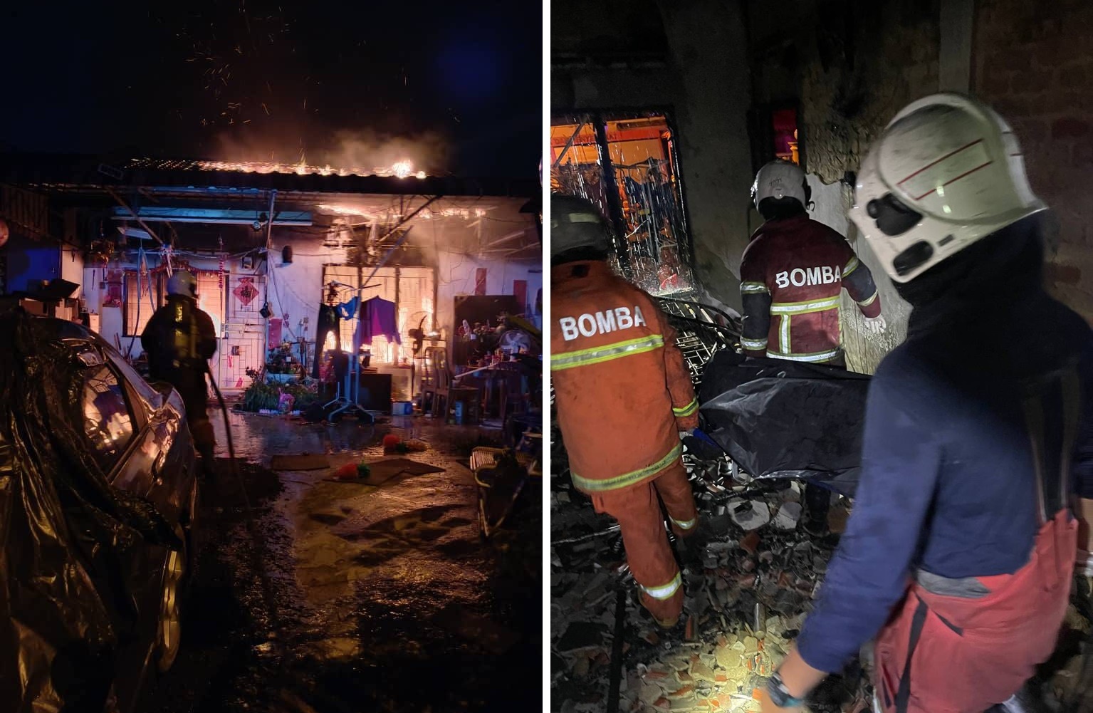 抵达现场,发现着火的是 20X60 尺的单层排屋单位,已被烧毁80%。