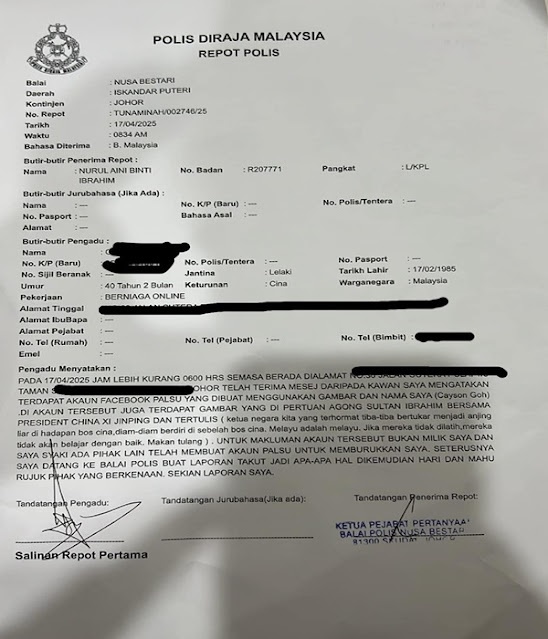 (新山17日讯)网传辱侮国家元首的贴文,闹得沸沸扬扬。警方证实接获投报,涉案男子指出,有人在他不知情下,盗用了其姓名和照片,开设假账号贴文。