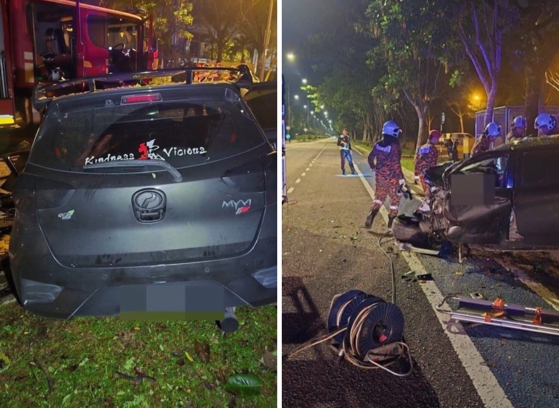 他说,初步调查,事发时,父亲驾驶国产Myvi轿车,从茂奥斯汀驶朝艺达园行驶准备回家,车子驶至事发地点疑失控,撞向左侧路肩后,再撞上一棵树。