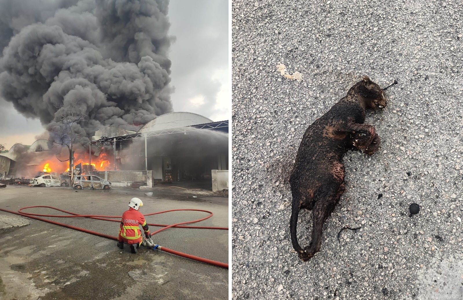 (古来25日讯)存放油漆工厂失火,传出连环爆炸声,火焰冲天骇人,3名工人在火患中受伤,一只猫被烧死。