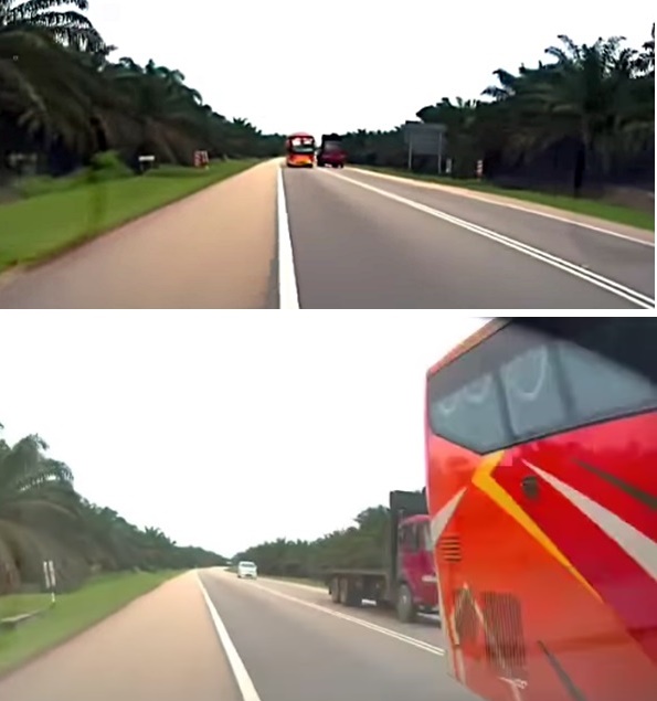 巴士也在迎面有轿车的情况下,超越一辆罗厘,造成轿车被迫驶入紧急车道,罔顾人命。