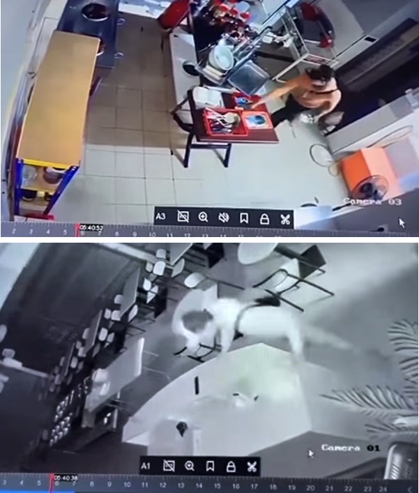 网上流传视频,至少3名窃匪共乘一辆车,潜入餐馆里搜刮。