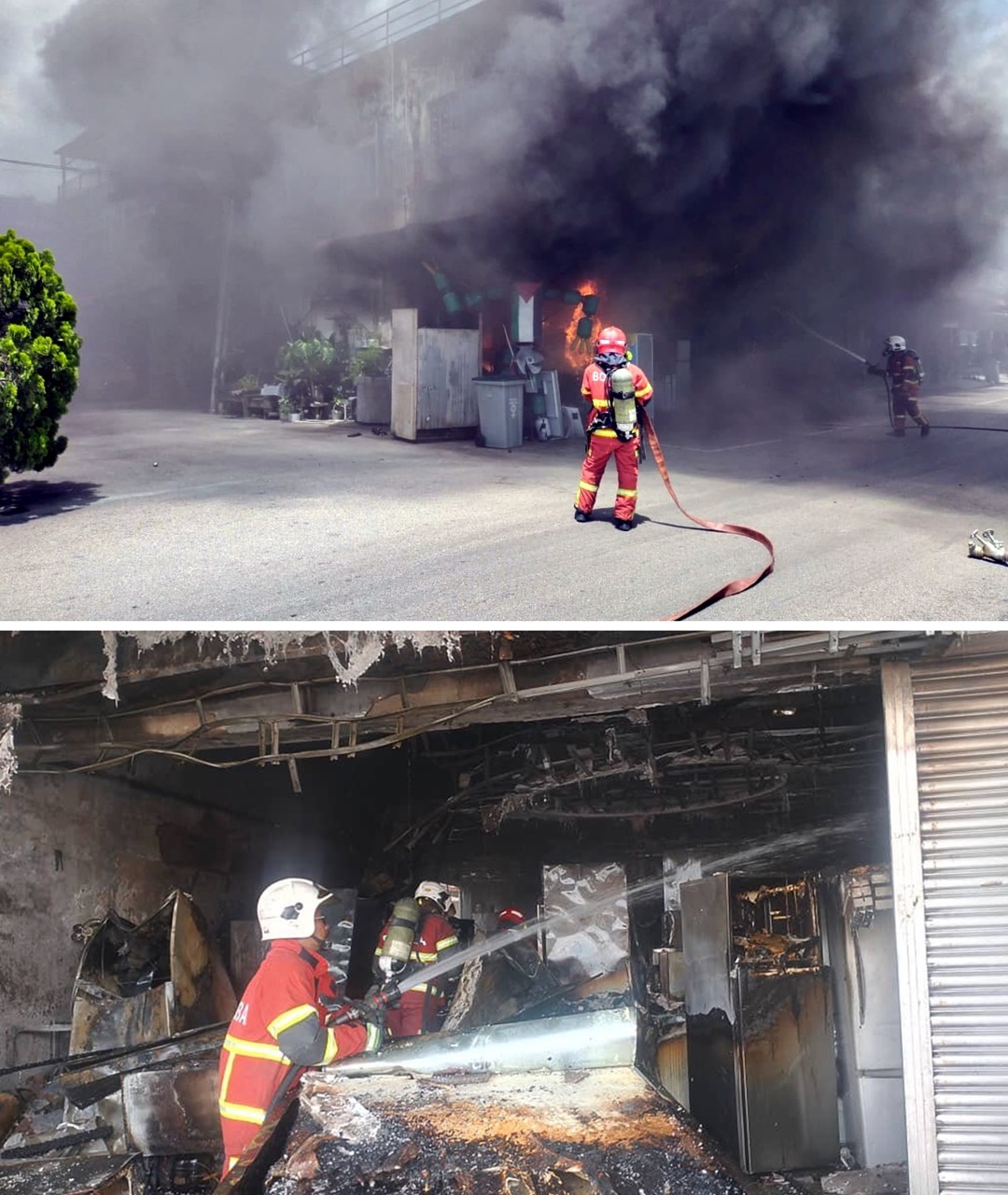 (居銮6日讯)双层店屋着火,楼下冰箱维修店严重烧毁,二楼一名男子被困,幸庆获消拯员及时救出。