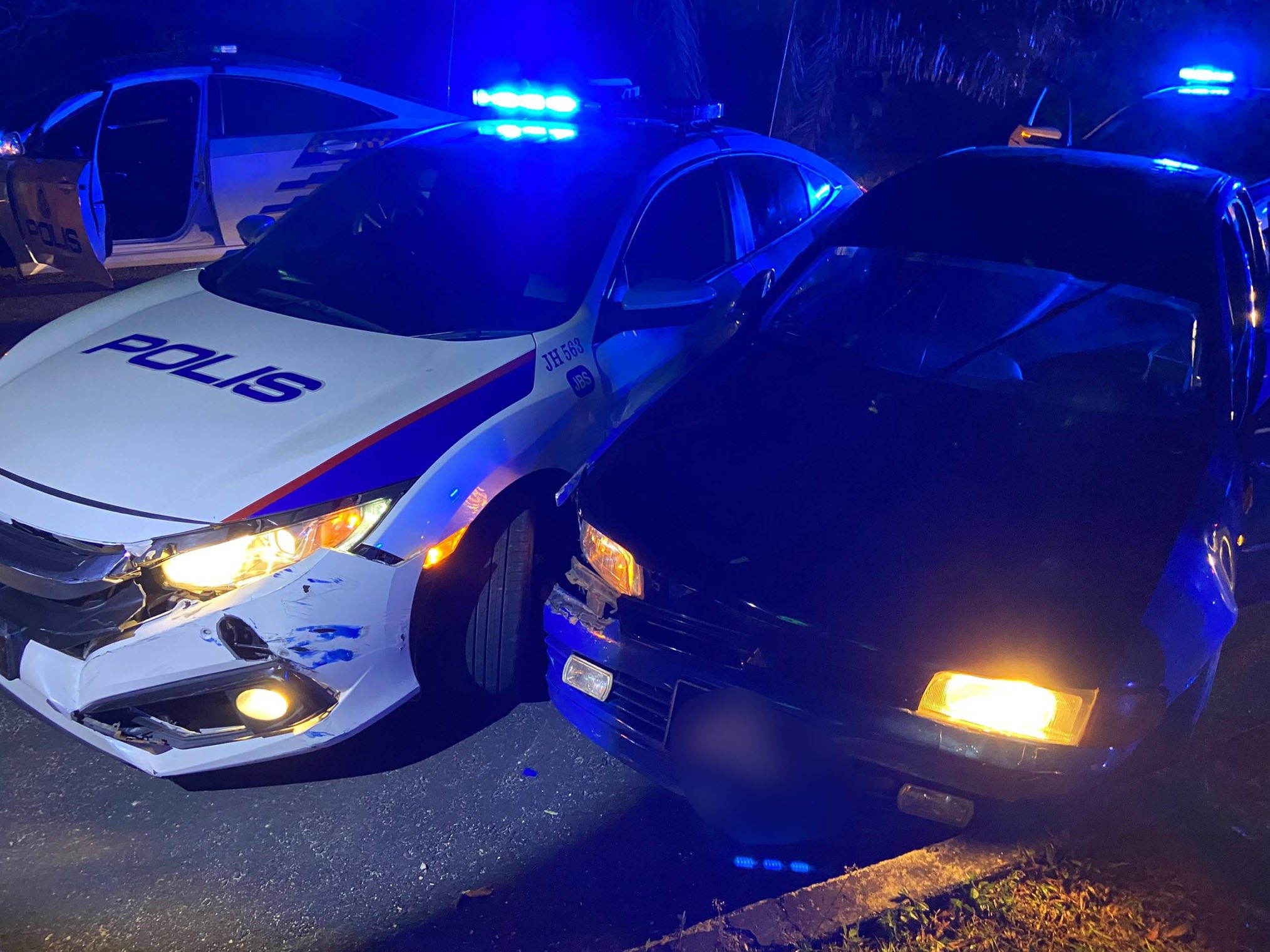 警方出动三个警区,即新山南警区、新山北警区、至达城警区警车追。