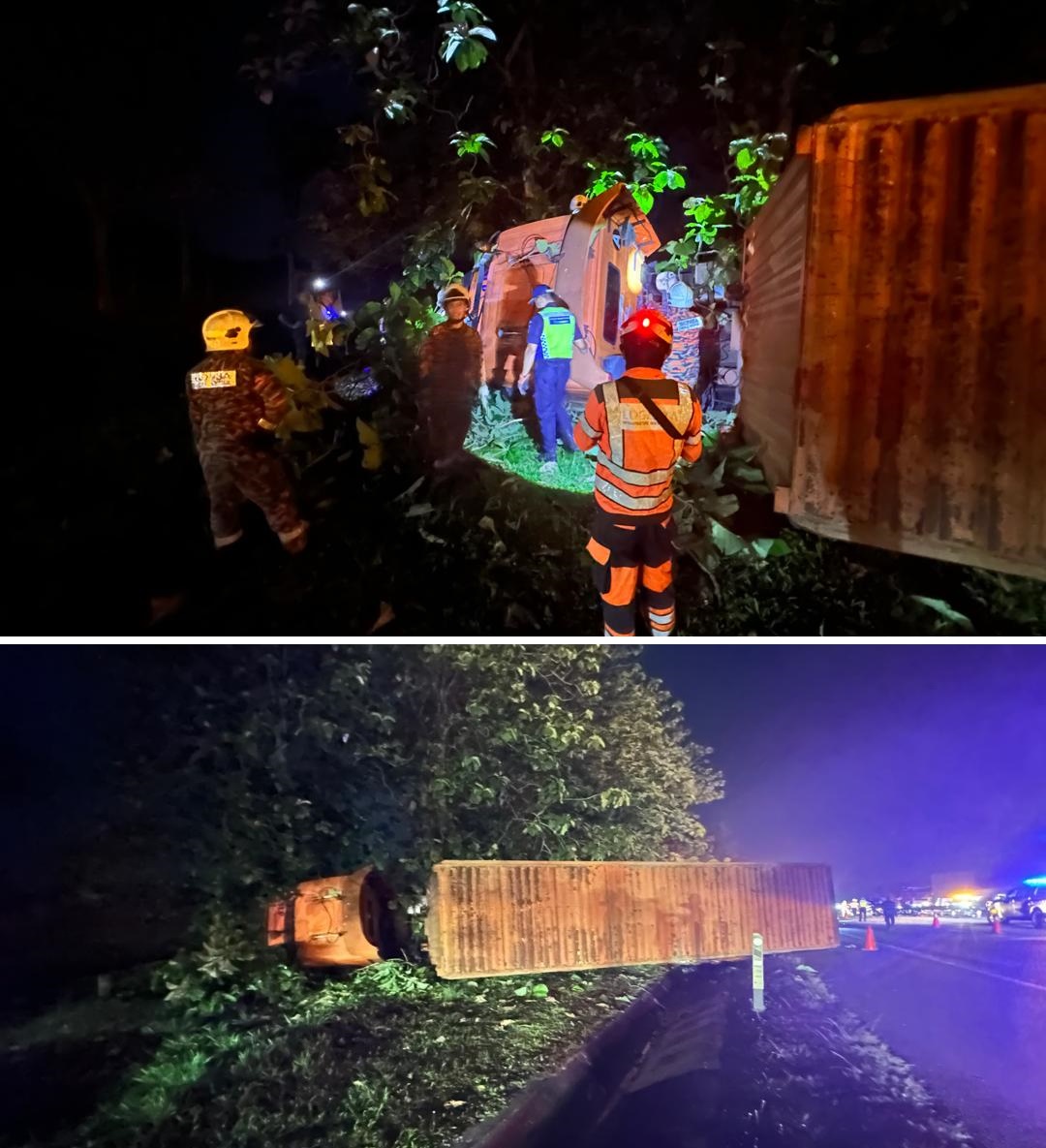 ◆货柜罗厘:男司机受伤送往古来政府医院。