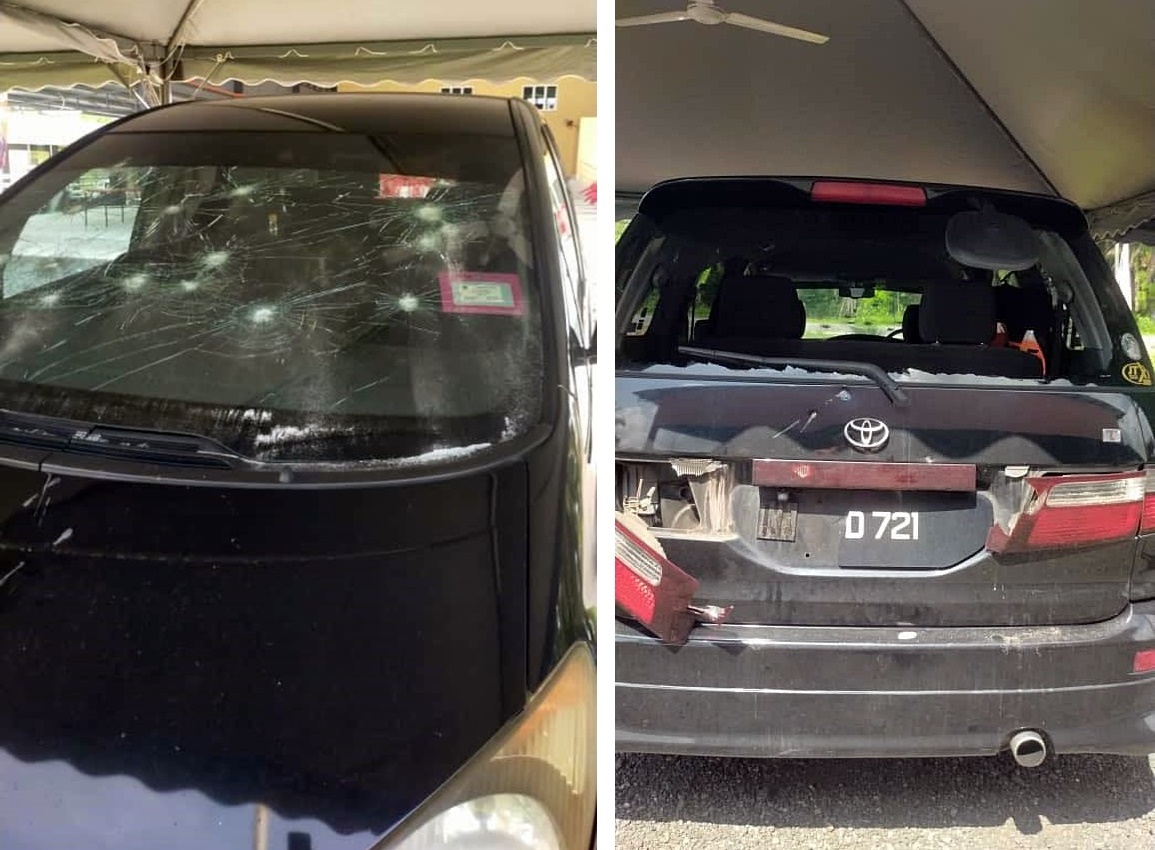 诚信党的四加亭国会议员阿米诺胡达今日发文指出,今日上午,本来沉浸在迎接第12个孙子的喜悦中,没料到服务中心办公室主任Ezam Taslim通知,贴有服务中心贴纸的Toyota Estima休旅车被砸毁。