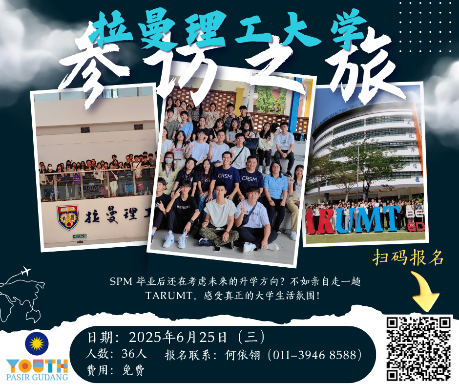 活动当日将从柔佛再也出发,前往位于吉隆坡的拉曼理工大学校本部,预计下午启程返程,并于晚上9时30分抵达柔佛再也。