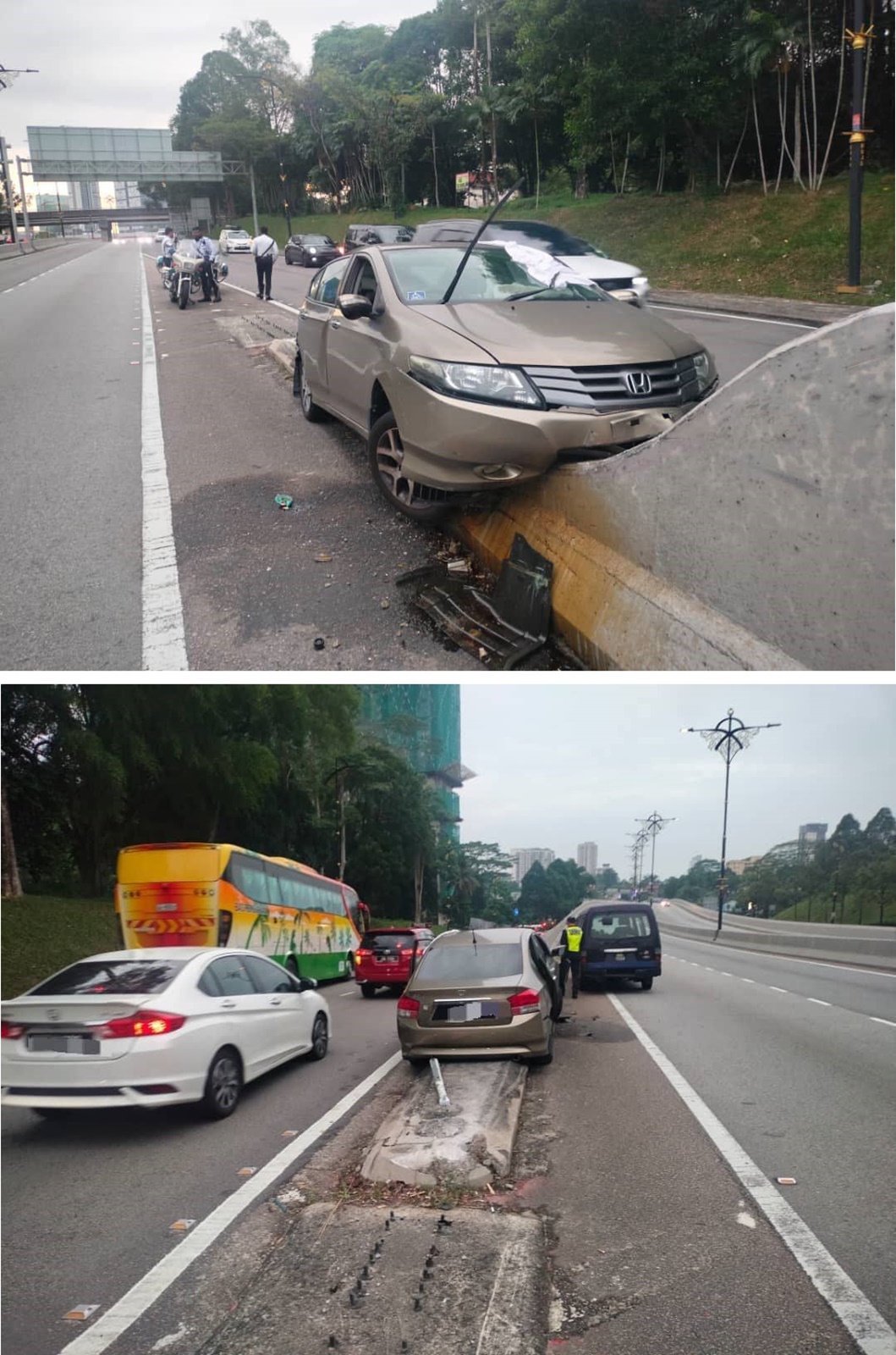 司机腹部受伤,坐在后排的51岁儿子(残疾人士,OKU)颈部和头部受伤。两人均被送往新山中央医院,并在红区接受治疗。