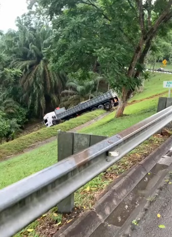 (新山18日讯)罗厘疑为闪避突然换车道的轿车,以致直接撞破路边围栏,坠下斜坡。