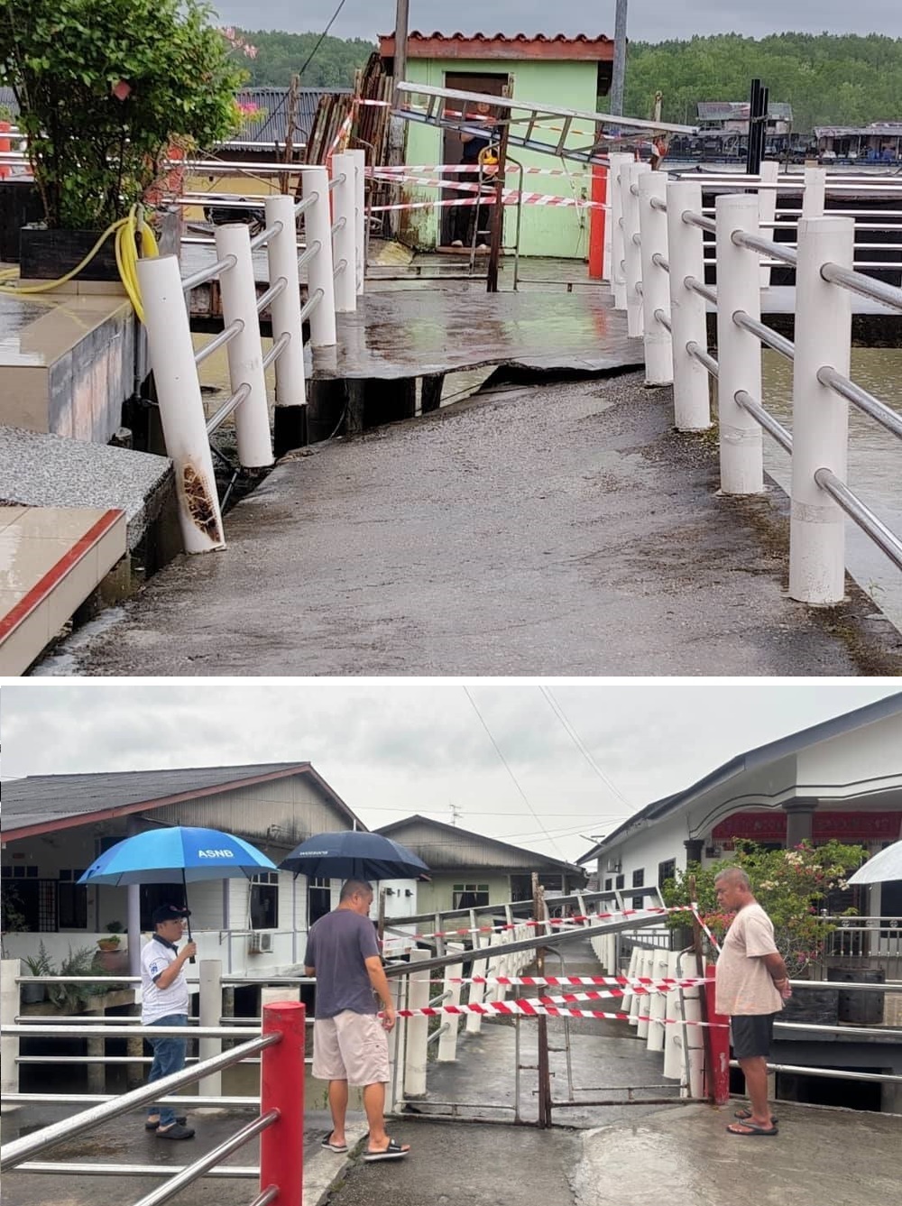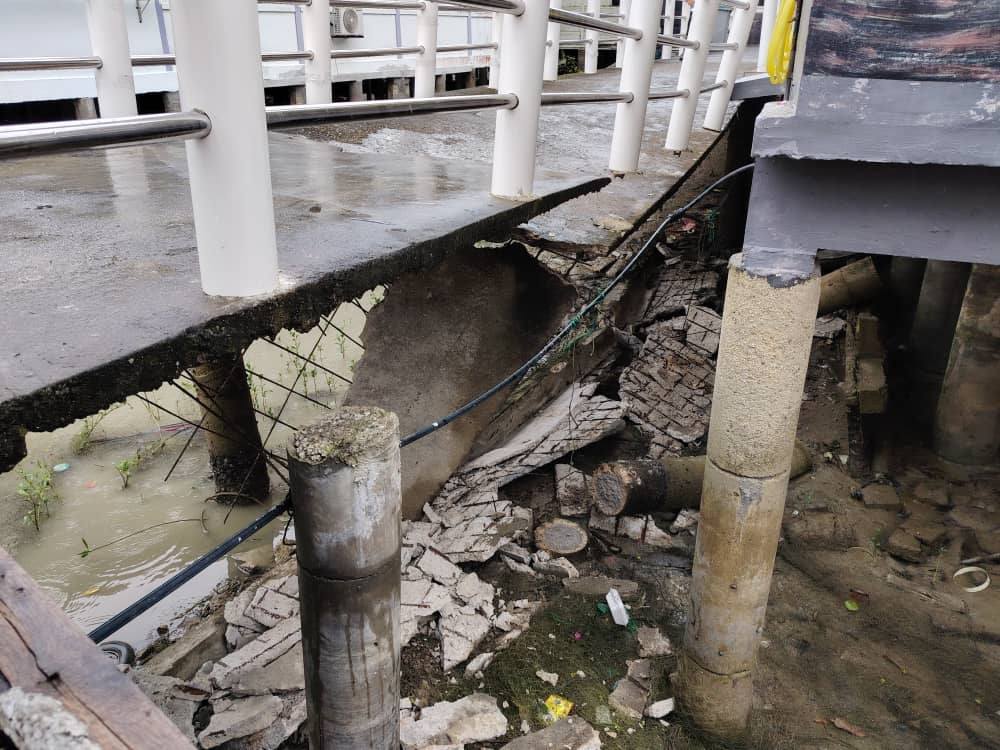 (笨珍19日讯)龟咯水上高脚屋处的步行道,出现塴塌,庆幸无人受伤。