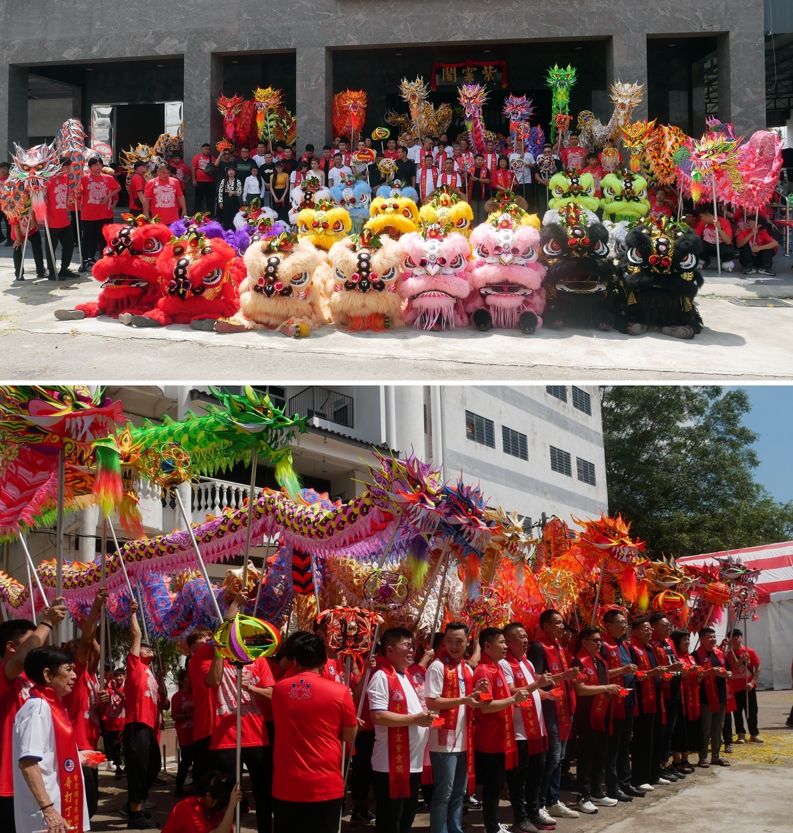 12对舞狮和12条舞龙,在教练林茂耀率领团队努力下,花4个多月亲手制作打造,色彩缤纷鲜丽,个个都炯炯有神,生龙活虎。
