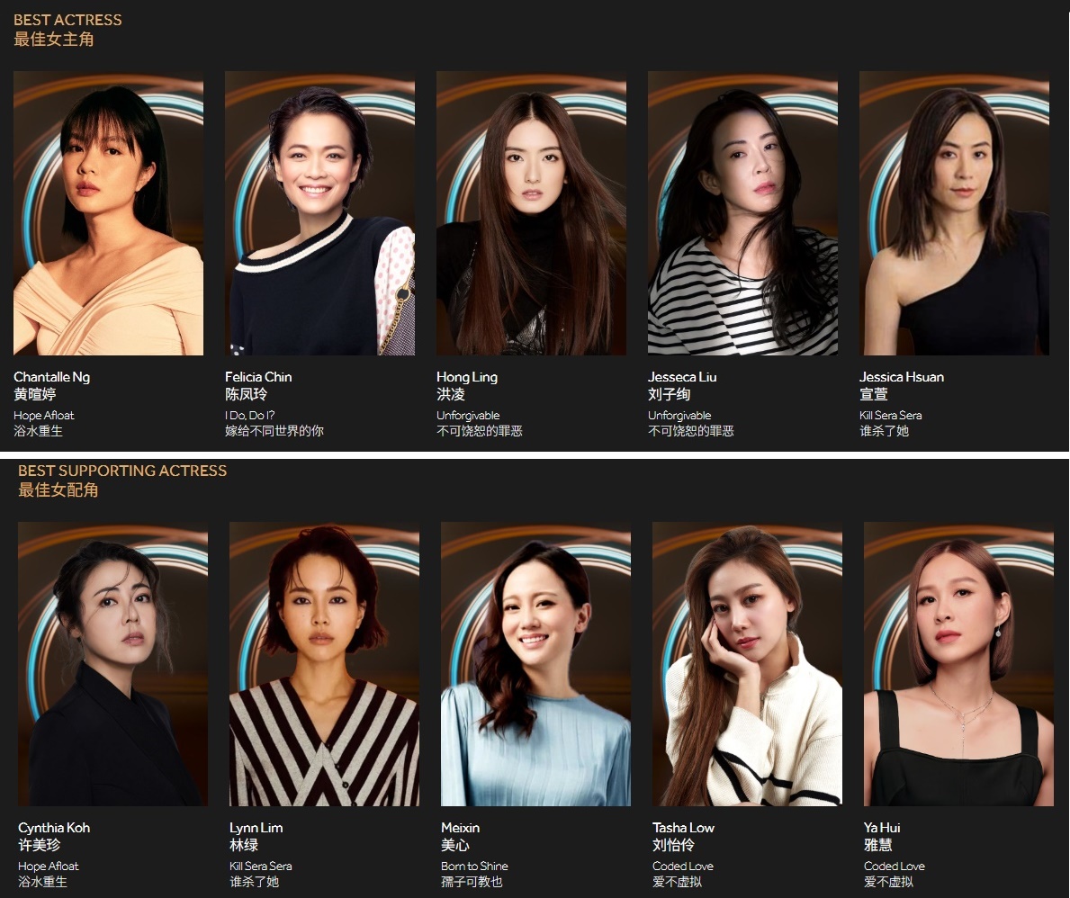 最佳女主角入围,首见香港视后宣萱以《谁杀了她》入围,与《浴水重生》黄暄婷、《不可饶恕的罪恶》刘子绚及洪凌、《嫁给不同世界的你》陈凤玲争夺新加坡视后。