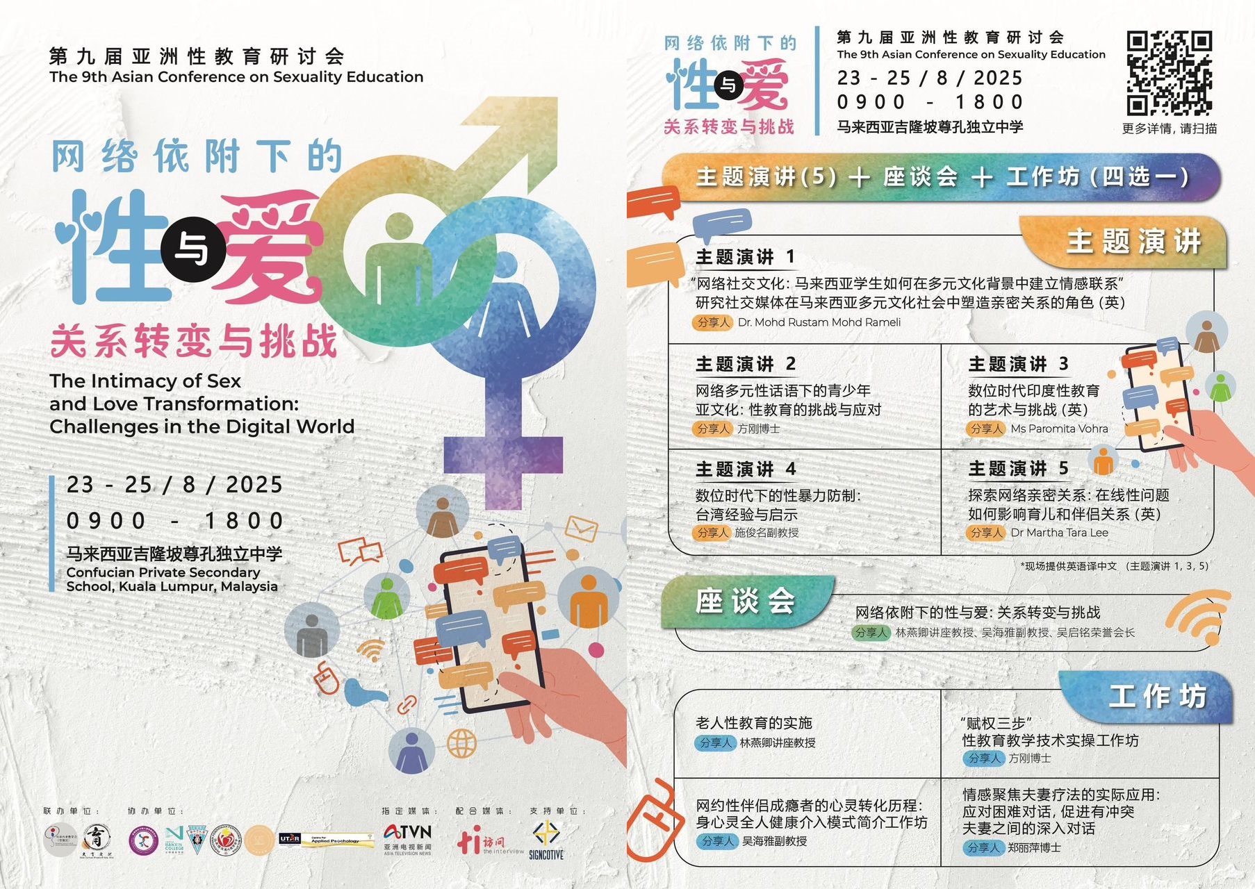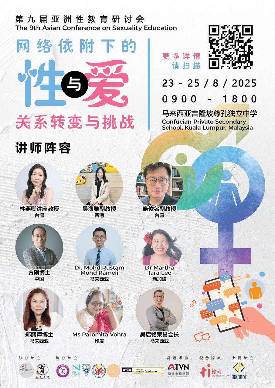 该研讨会由马来西亚性学会(雪隆区)与大育文化联合主办,订于2025年8月23日至25日在吉隆坡尊孔独中举行,主题为“网络依附下的性与爱:关系转变与挑战”。