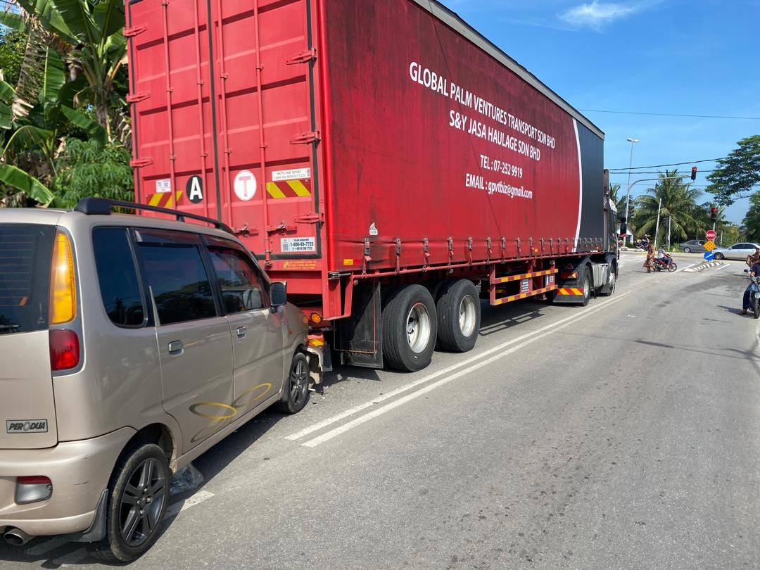 峇株巴辖警区主任Shahrulanuar发文告指出,事发时,44岁的大马籍罗厘男司机,从Bindu方向朝中江行驶,并在红灯时停在交通灯处。