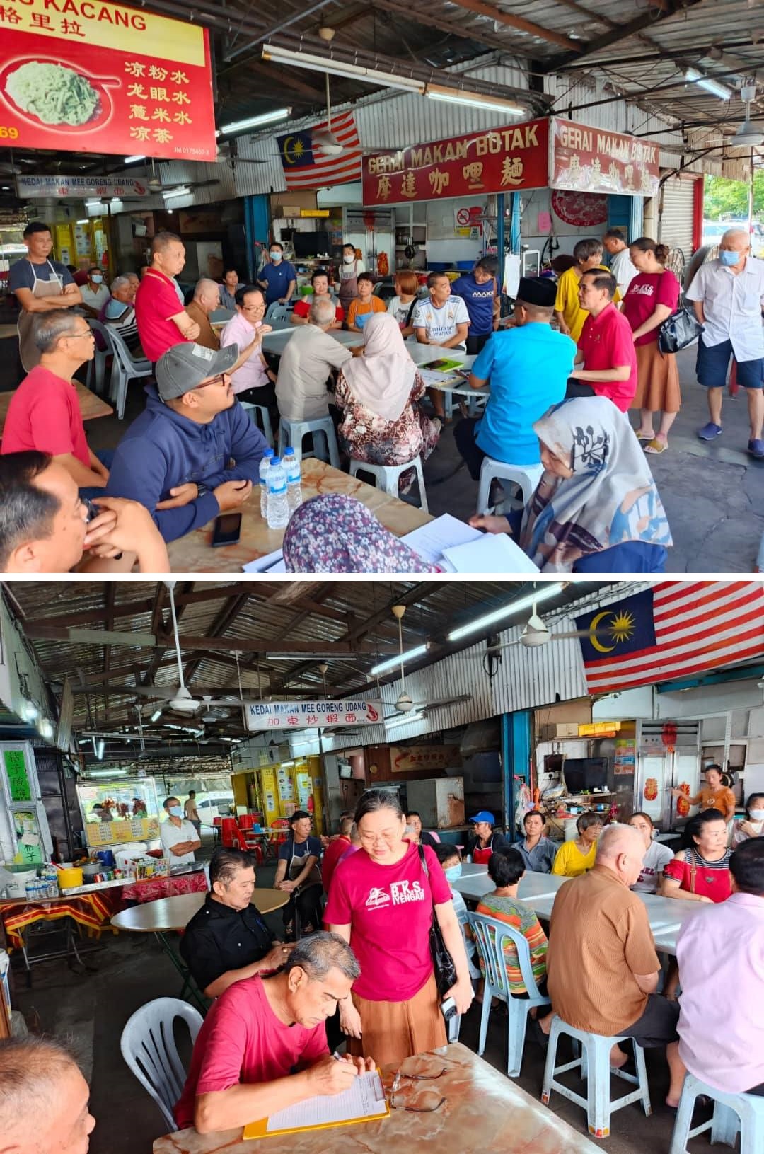 明吉摩州议员周忠信今早与加冕小贩中心商家的对话会,同时也邀请了居銮市议会代表进行讲解。