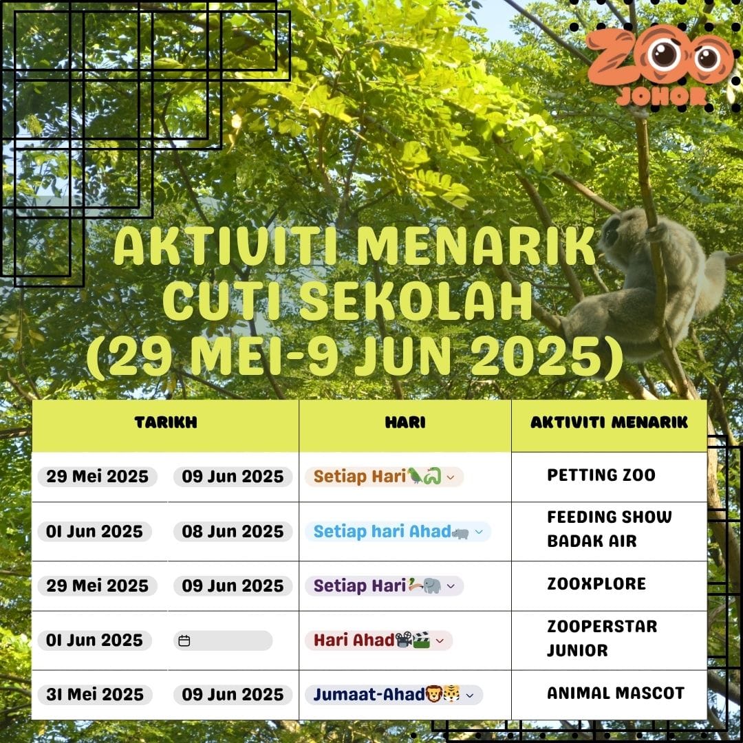 柔佛动物园在学校假期期间,5月29日至6月9日安排有各种有趣的活动,让学生能参与各种有趣的活动。