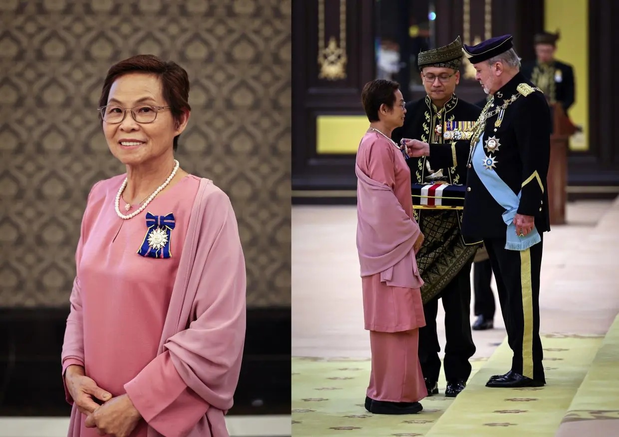 (昔加末2日讯)来自昔加末的手语翻译员陈丽美,在今日国家元首苏丹依布拉欣华诞,获颁授护国有功成员勋章(AMN),以表彰40年来默默为无声群体发声的贡献。