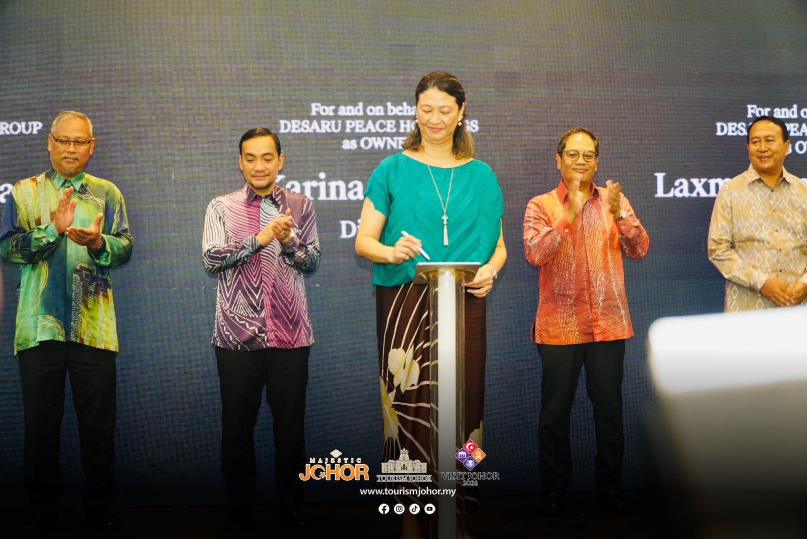 出席签署仪式代表有文华东方酒店集团总执行长Laurent Kleitman、Destination Resort and Hotel总执行长Karina Ridzuan、Symphony Asia Holdings集团主席 Laxman Vaidya、迪沙鲁滨海主席拿督Mohamed Nasri Sallehuddin等。