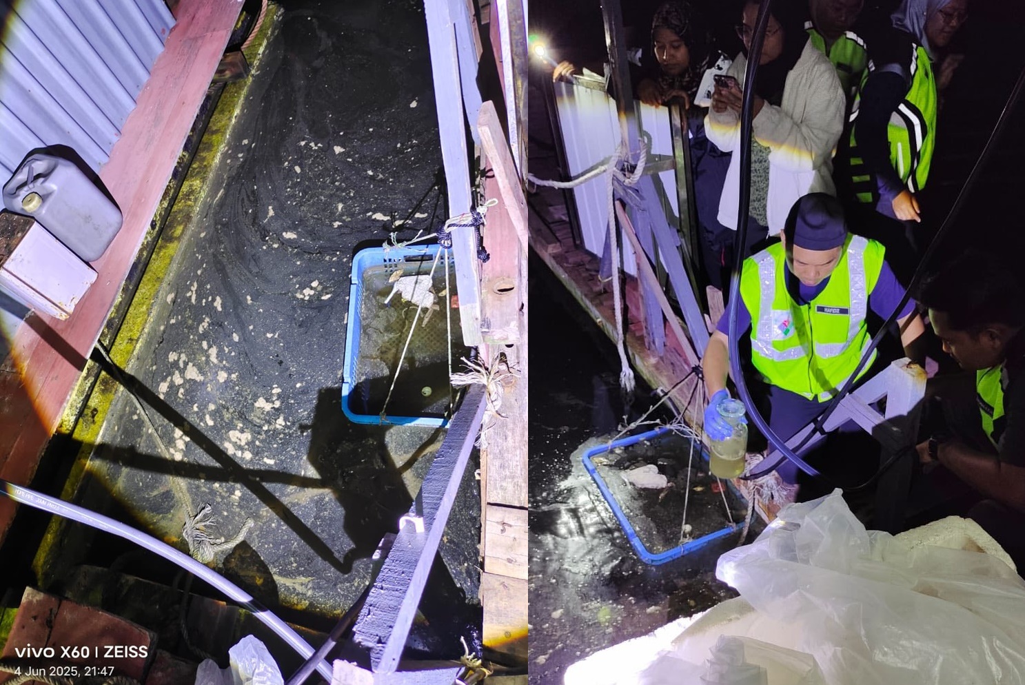 《大都会日报》报导,47岁渔筏业者Faizul Jumat Ismail告知,6月4日早上便发现海水混浊,而且有刺鼻异味,到了中午至傍晚时份,污染加剧。