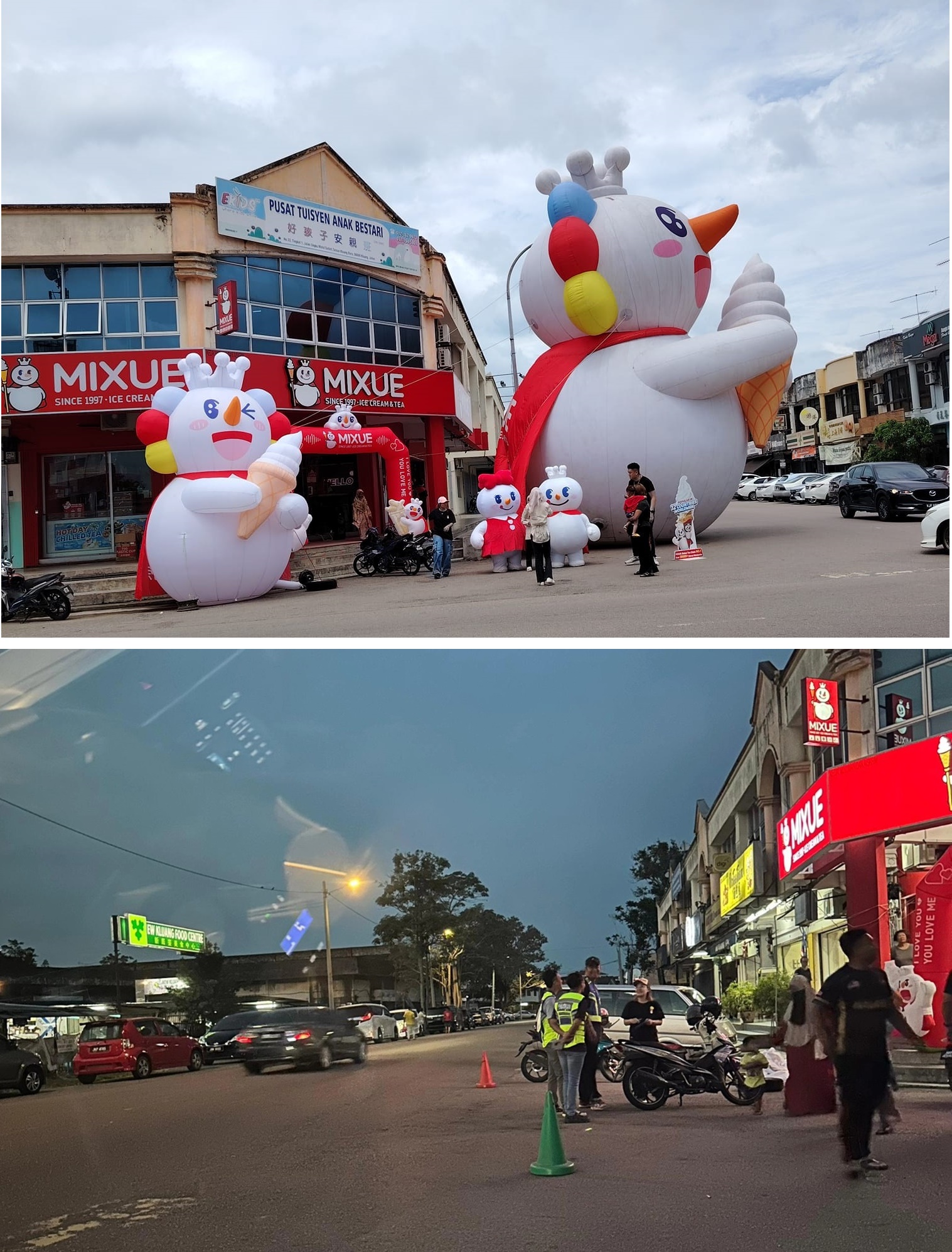蜜雪冰城位于新居銮(Kluang Baru)分店开张,门前出现10公尺的“雪王”充气玩偶,相当抢眼,不少人大赞可爱。