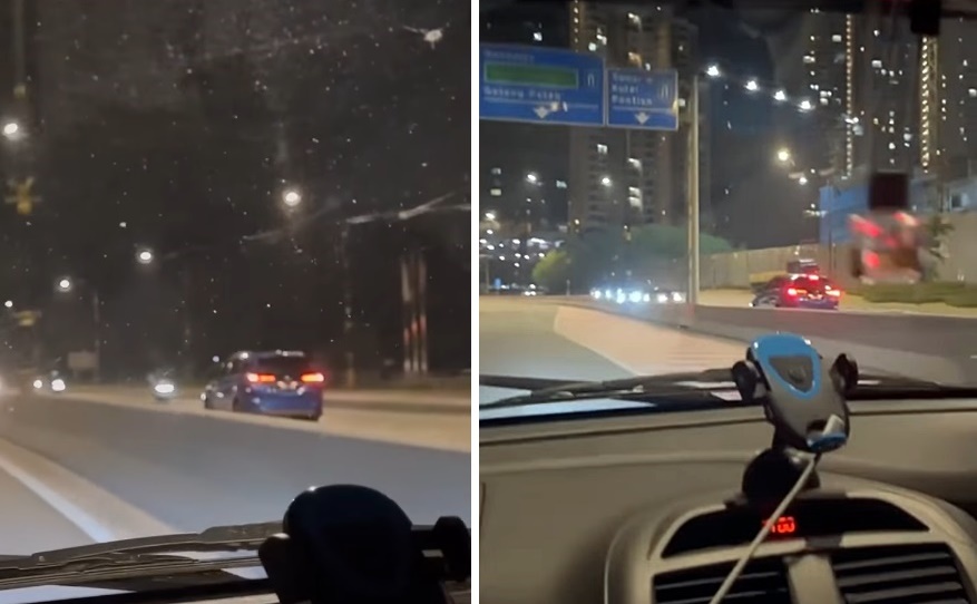 蓝色的Perodua Aruz轿车逆向行驶,也被其他轿车摄下,并发布在社交媒体。