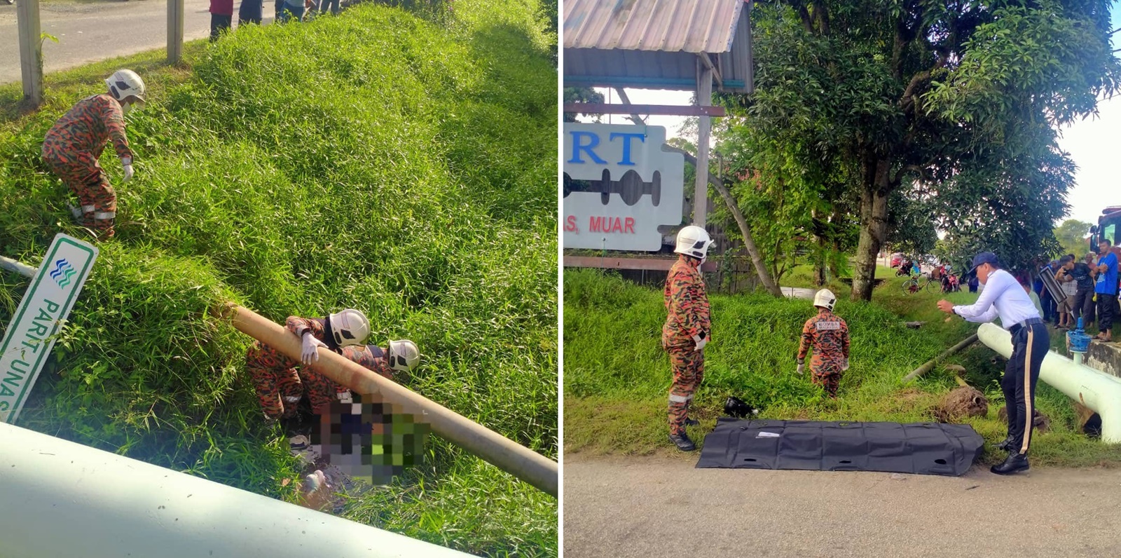 另外,麻坡消拯局于早上8时57分接获投知,派出10名消拯人员前往将遗体从沟里移出。
